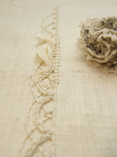 I stitched an approximation of the lace pattern on top of the previous layer.