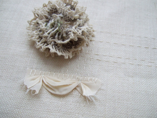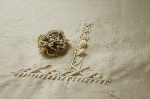 I used the line of Meg’s embroidery and went on embroidering with a thicker thread interpreting the motif of the lace.