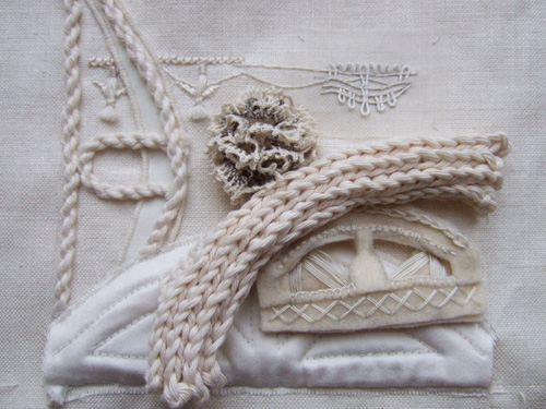 The layers are getting thicker now, so I used a padded piece of cotton with top-stitching following the original lace pattern.
