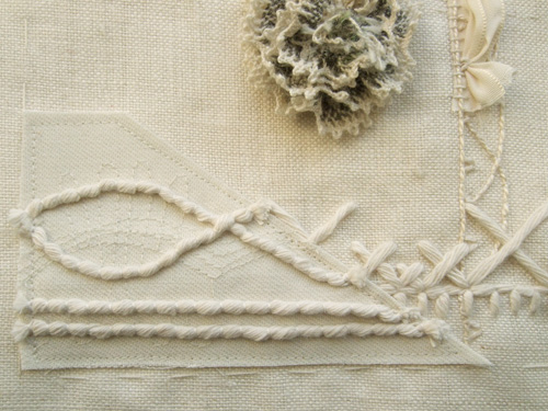 The layers are getting thicker now, so I used a padded piece of cotton with top-stitching following the original lace pattern.