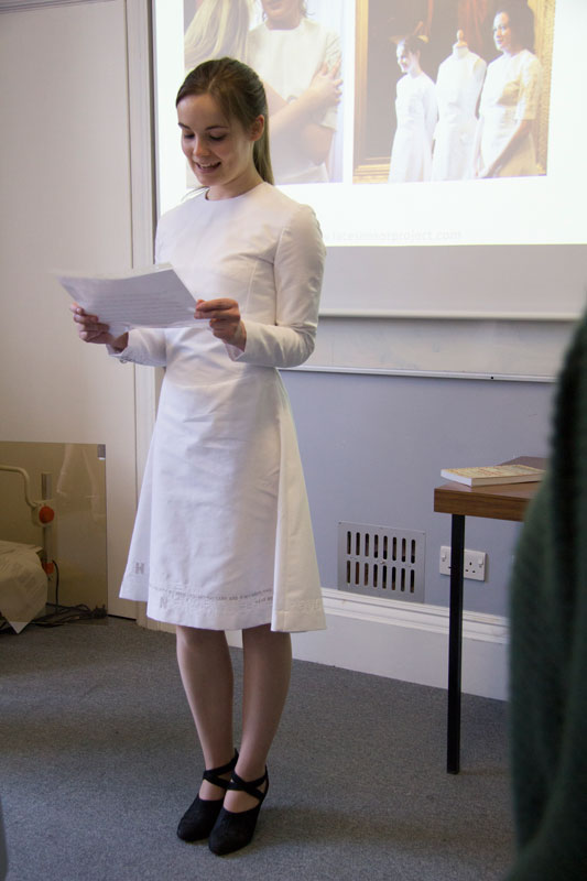 Vhari reading her text wearing ‘Emma’